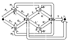 Вторая и наиболее важная часть системы (компоненты всех матриц, входящих в (5)), осуществляет через взаимодействие базисных структур основное преобразование сигнала. Третья часть (компоненты вектора