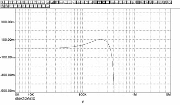 На рис. 1 показаны результаты расчета ФНЧ Чебышева 5-го порядка с граничной частотой 300 кГц и неравномерностью АЧХ 8 мдБ. Для реализации D-элементов можно использовать параметрически низкочувствительную схему, состоящую из двух ОУ, двух конденсаторов и трех резисторов (рис. 2а). Однако даже применение широкополосного ОУ 140УД26 приводит, как это видно из анализа АЧХ фильтра в полосе пропускания, к значительной неравномерности (погрешности коэффициента передачи). Строго доказывается, что эта погрешность обусловлена влиянием частоты единичного усиления ОУ.