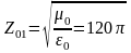 а свободное пространство по обе стороны от пластины в виде линии передачи без потерь с волновым сопротивлением: