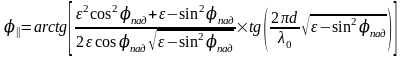 Пользуясь упомянутым методом можно найти, что фаза коэффициента прохождения перпендикулярно и параллельно поляризованных волн может быть выражена следующим образом: