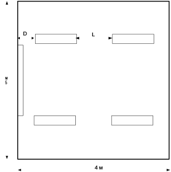Расстояние между стенами и крайними рядами светильников d, м, ориентировочно принимается равным