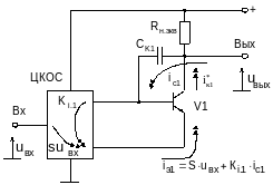 выделить емкостную составляющую тока базы транзистора V1 с помощью ЦКОС. Такой режим обеспечивается близким к нулю входным сопротивлением ЦКОС;