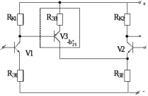 в эмиттерную цепь V1 с коэффициентом передачи тока