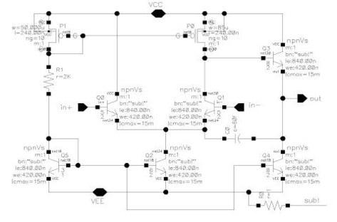 обеспечить высокое сопротивление в эмиттерной цепи V1 с помощью подсхемы ЦКОС;