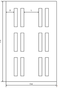 Расстояние между стенами и крайними рядами светильников d, м, ориентировочно принимается равным