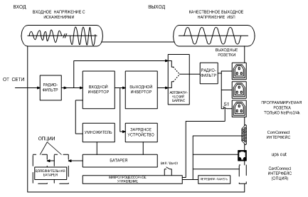 Источник бесперебойного питания переключится на нормальную работу, когда ликвидируется перегрузка или температура упадет ниже уровня тревоги. Если перебой электропитания произойдет во время работы на байпасе, то источник бесперебойного питания переключится на питание от батарей, и, в свою очередь, когда батареи разрядятся, источник бесперебойного питания перестанет снабжать нагрузку энергией.