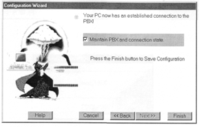 В следующем меню нажать «Test Connection» (рисунок 6.15). Если все шаги были выполнены правильно, появится надпись «А test connection was finished normally» (рисунок 6.16), пометьте строку «Maintine PBX and connection state» и нажмите «Finish» для сохранения конфигурации настройки