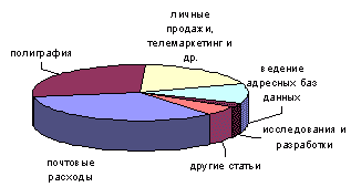 Почтовые расходы (тариф и экспедирование) – 34%, полиграфия – 28, на коммуникационные виды директ-маркетинга (личные продажи, телемаркетинг, купонные объявления и пр.) – 19, ведение адресных баз данных – 11, исследования и разработки – 3, другие статьи – 5% (диаграмма 2).