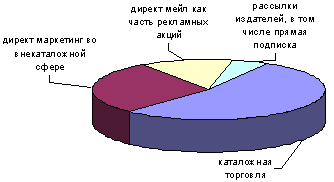 Каталожная торговля – 53%, директ-маркетинг во внекаталожной сфере – 28, директ мейл как часть рекламных акций – 13, рассылки издателей, в том числе прямая подписка, – более 5% (диаграмма 3).