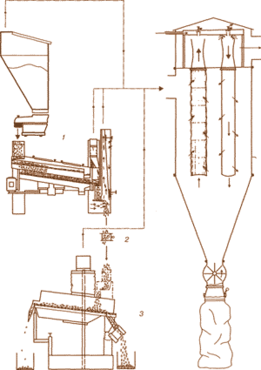 1 – сепаратор із сітчастими фільтрами й аспіраційним каналом. На ситах відділяються великі домішки (наприклад проростки) і пісок. В аспіраторі відділяються волокна, жилки й інший легкий матеріал; 2 – у магнітному сепараторі відділяються металеві частки; 3 – апарат для видалення каміння, що працює за принципом псевдозрідженого шару із пневматичною аспірацією. У ньому відділяються камені й інші металеві й важкі частки. Робоче повітря піддається сепарації в циклоні.