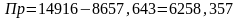 | Прибыль от реализации продукции, т.р. | 6258,357 |