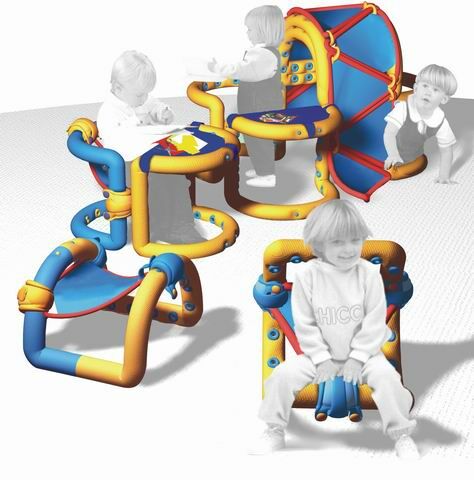 Оборудование позволяет конструировать игровые образы в масштабе комнаты. Конструирование связано с действиями, при которых дети нуждаются в помощи друг друга. То есть оборудование можно представить как структуру, объединяющую интересы детей.