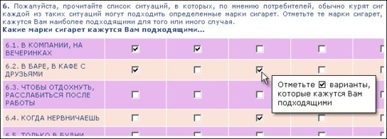 Для ответов на вопросы достаточно проставить "галочку" в соответствующей графе. Каждый раз Вы можете отметить одну, более одной или ни одной марки.