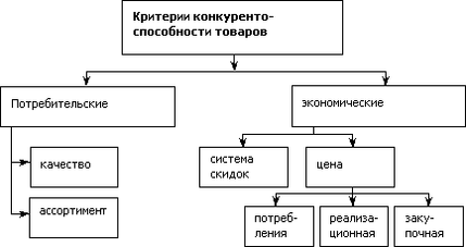 Потребительские критерии конкурентоспособности определяют потребительскую ценность, или полезность, товаров и представлены двумя основополагающими характеристиками: качеством и ассортиментом. Указанная группа критериев имеет наибольшую значимость для всех потребителей, но особенно для индивидуальных. Это объясняется тем, что производственные потребители, приобретая сырьевые, энергетические и иные товары, имеют определенные возможности формировать заданный уровень качества и ассортиментную принадлежность товаров путем устранения отдельных дефектов. Индивидуальный потребитель, приобретающий товар сформированного ассортимента и качества для личного использования, как правило, не может изменить указанные характеристики товара.