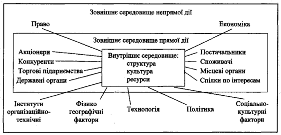 Зовнішнє середовище неоднорідне та диференційоване по силі, періодичності і характеру впливу на ситуацію. В ньому можна виділити макрооточення (середовище непрямої дії) і середовище безпосередньої дії. При аналізі зовнішнього середовища необхідно: