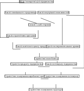 Із схеми рис.1.1 видно, що головним стратегічним плановим рішенням являється вибір цілей для підприємства - місії та конкретних цілей, що забезпечують їх реалізацію. Оскільки любе підприємство - це відкрита система і існує завдяки тому, що задовольняє якусь потребу своїх споживачів, клієнтів, то й місія його повинна відшукуватись в навколишньому середовищі, а не всередині підприємства. Отже, прибуток не може бути місією підприємства, бо він цілком внутрішня проблема, хоч і дуже суттєва.