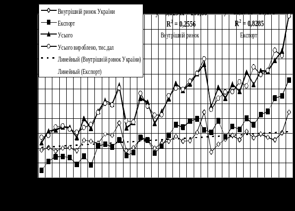 України та на експорт у 2003 - 2005 роках (фактичні дані та регресійний аналіз)