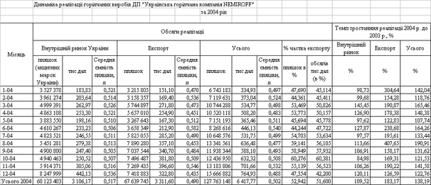 Динаміка та структура реалізації горілчаної продукції ДП "УГК NEMIROFF" у 2004 році [51]