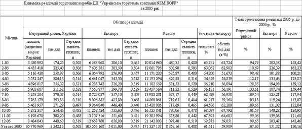 Динаміка та структура реалізації горілчаної продукції ДП "УГК NEMIROFF" у 2005 році [51]