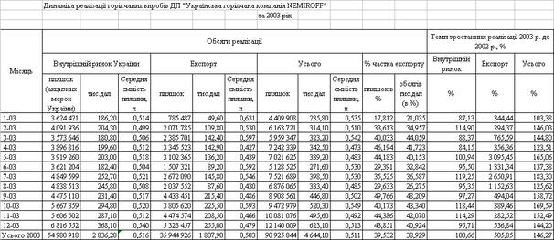 Динаміка та структура реалізації горілчаної продукції ДП "УГК NEMIROFF" у 2003 році [51]