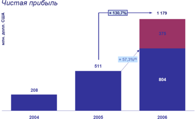| Чистая прибыль | 1 179 млн долл. США | + 130,7% |