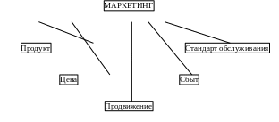 Однако Н.П. Радковская, рассматривая комплекс маркетинга банковских услуг, обосновывает необходимость его расширения с традиционных четырех элементов (продукт, цена, продвижение, сбыт) до пяти, дополнив его еще одной составляющей — стандартом обслуживания (рис. 9). Стандарт обслуживания включает в себя такие категории, как процесс и скорость облуживания, соответствие продуктов и услуг стандартам и нормам, квалифицированные консультанты, квалифицированный и вежливый персонал, культура обслуживания, удобное расположение, удобный режим работы, широкий ассортимент услуг [26, с. 22].