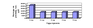 Как планируется, в первый год расходы на рекламу составят 26800 тыс. руб., затем 12800 тыс. руб. ежегодно.