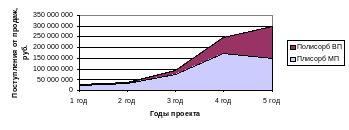 Из таблицы «Структура производственной программы» видно, что объемы производства Полисорба ВП будут расти более быстрыми темпами и к пятому году проекта структура производства измениться таким образом, что Полисорб ВП будет занимать 89% выпуска и приносить 50% выручки. Цена на препараты на протяжении пяти лет предполагается неизменной.