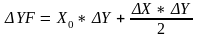 где XF - изменение результативного показателя за счет изменения фактора X; YF - изменение результативного показателя за счет изменения фактора Y; Х и У - отклонение фактических данных отчетного периода от базисных (плановых или фактических за прошлый период) по изучаемым факторам; Х0 и Y0 - базисные значения факторов Х и Y.