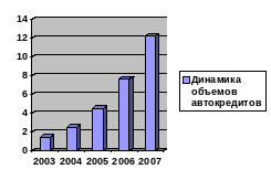 Рисунок 2. Динамика объема автокредитов в РФ, 2003-2007 гг, млрд долл.