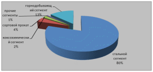 Структура выручки по сегментам группы НЛМК в 2008 году (от внешних покупателей)