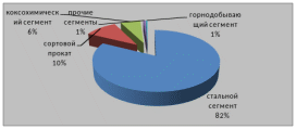Структура выручки по сегментам группы НЛМК в 2008 году (от внутренних покупателей)