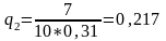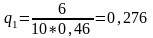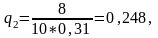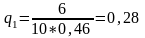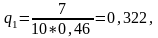 Далее произведем расчет конкурентоспособности продукции смешанным методом. Для этих целей выделим наиболее весомый показатель - q1, определяющий конкурентоспособность продукции - долговременность использования без дополнительных затрат (46%), остальные показатели объединим в группу (качество - 31%, цена - 14%, сроки поставки - 9%, что в сумме составляет 54%) - q2.
