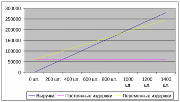 Где Кр – пороговое количество, С – цена за единицу продукции; VS – переменные затраты на единицу продукции.