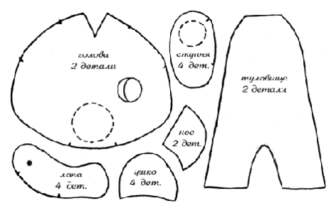 Рисунок 4 - Детали для изготовления мягкой игрушки модели «Медвежонок»