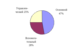 Состав персонала магазина представлен на рисунке 7. Наибольшую долю в общей численности работников занимает основной персонал магазина, а наименьшую долю – вспомогательный.
