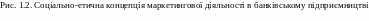 Соціально-етична концепція (матриця МcКinsey). Ґрунтується на тому, що цільова філософія, ідеологія, стратегія і політика банку, орієнтується на пріоритет загальнолюдських, а не вузьковідомчих інтересів. Іноді цю концепцію називають «орієнтованою на людину», або «концепцією інтелектуального споживання». Згідно цієї концепції, на наш погляд, найперспективнішою для банків – вона повинна сприяти інтересам суспільства в цілому. Дана концепція сформувалася на початку 80-х рр. Один з варіантів цієї концепції – концепція «7-С». У ній за допомогою інструментів маркетингу досягається рівновага між інтересами споживачів, виробників і суспільства в цілому. Іншими словами, в процесі задоволення запитів клієнтів, банки отримують свій прибуток і суспільство (через клієнтів і банк) отримує свою частку у формі бюджетних відрахувань або будівництва соціальних об’єктів.