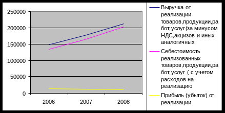 За 2006-2008 гг. прибыль от реализации сократилась на 22,01%.