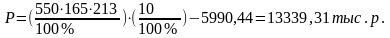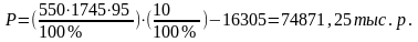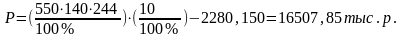 Для расчёта условного показателя рентабельности продаж подставили исходные данные в выражение (2.16)