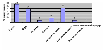 Для вивчення відношення споживачів до кисломолочної продукції було проведене анкетне опитування (додаток ). Опитування проводилося протягом січня і лютого 2004 року і було опитано 200 респондентів. Дане опитування мало на меті ширше виявити уподобання споживачів, їх вимоги до кисломолочної продукції. Опитували тих покупців, які безпосередньо купляли кисломолочні продукти або проявляли інтерес до цієї продукції. Опитування дало наступні результати (рис.4):