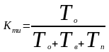 коэффициент технического использования – отношение математического ожидания интервалов времени пребывания системы в работоспособном состоянии за некоторый период эксплуатации к сумме математических ожиданий интервалов времени пребывания системы в работоспособном состоянии, простоев, обусловленных техническим обслуживанием, и ремонтов за тот же период эксплуатации,