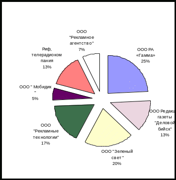 Рисунок 11 – Доли рынка ведущих рекламных компаний г. Бийска
