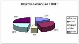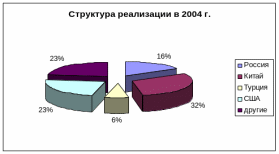 Вывод: Как можно видеть из приведенных таблиц и рисунков, структура реализации продукции по странам-производителям незначительно отличается от структуры поступления товаров. Это означает, что маркетинговая служба предприятия ПБОЮЛ «Виноградова» в 2004 году достаточно точно спрогнозировала покупательский спрос и его распределение по товарам различных стран-производителей. Этот вывод подтверждается данными об уровне реализации: