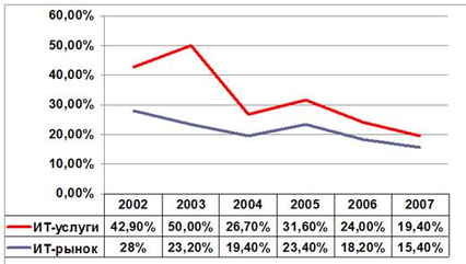 Рис.2.2 - Темпы роста рынка IT-услуг и IT-рынка в целом27