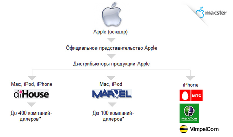 Дилеры продукции Apple (по данным дистрибьюторских компаний)