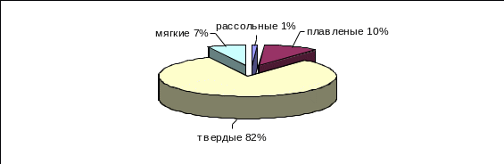 Производство сыров, наравне с остальными видами молочной продукции, является традиционным для Республики Беларусь. На выпуске твердых сыров специализируются около 30 предприятий. Структура выработки жирных сыров в Беларуси представлена на рисунке 1.1: