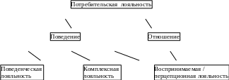 Разные подходы к трактовке природы и структуры потребительской лояльности ведут к различным ее определениям, что обуславливает отсутствие единого подхода к измерениям и способам повышения потребительской лояльности. В общем виде лояльность клиентов можно представить как сочетание двух компонент – поведения и отношения. В зависимости от их присутствия выделяют три типа лояльности: поведенческую, воспринимаемую (перцепционную) и комплексную (рис. 1).