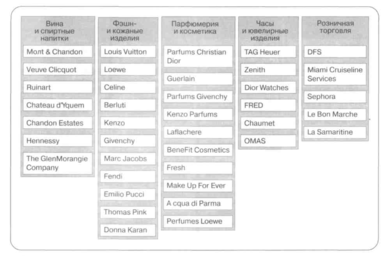 Таким образом, процесс консолидации индустрии предметов роскоши происходил в период бурного роста рынка, когда крупные фирмы боролись за первенство, объединяя под своим крылом как можно больше известных и многообещающих брендов. Последние, в свою очередь, входили в состав мощных конгломератов с целью получения финансовой поддержки для процесса расширения своего присутствия на перспективных рынках.