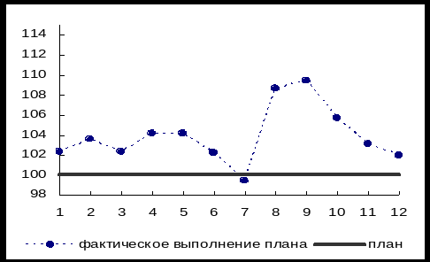 Для определения равномерности развития розничного товарооборота магазина целесообразно составить график выполнения плана по месяцам, что отражено на рисунке 4.