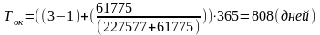 где Ток – срок окупаемости проекта, дни; k – приближённый дисконтированный срок окупаемости проекта (3 года); l – продолжительность в днях расчётного интервала времени (месяца, квартала, года), в котором выражен показатель k (365 дней).